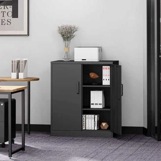 Metal Storage Cabinet with Lock-Garage Storage Cabinet with Locking Doors and Adjustable Shelves,Black Steel Lockable File